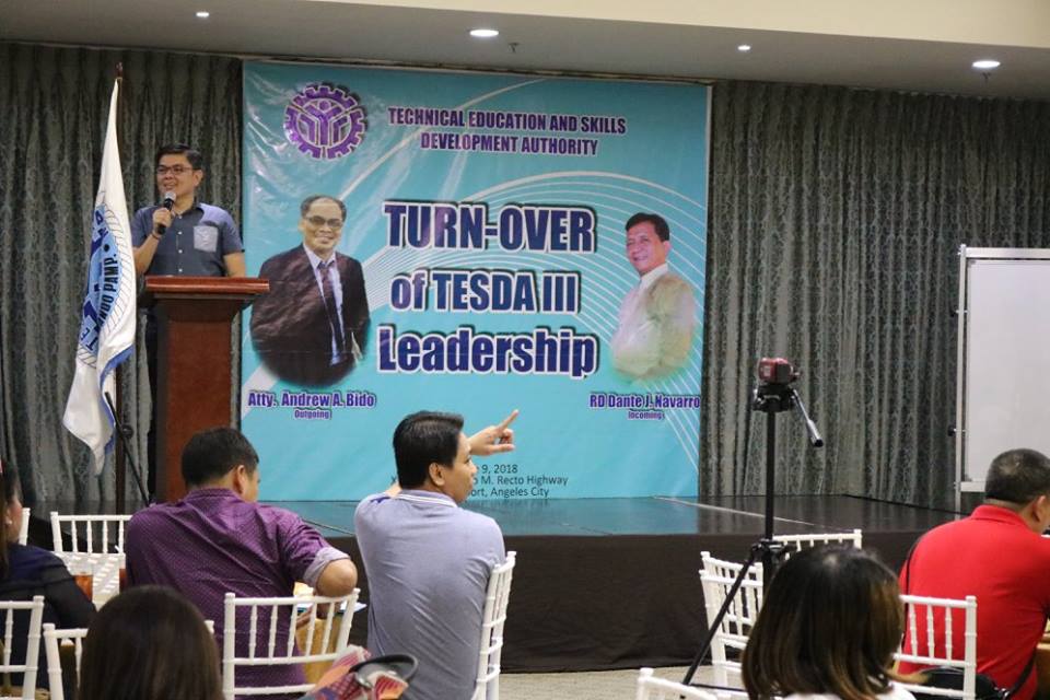 The very strong leaders of TESDA,RD Andrew A. Bido and RD Dante Navarro exchanged words of accomplishments and motivation during the turn over ceremony on March 9, 2018 @ Xenia Hotel, Clarkfield, Pampanga.